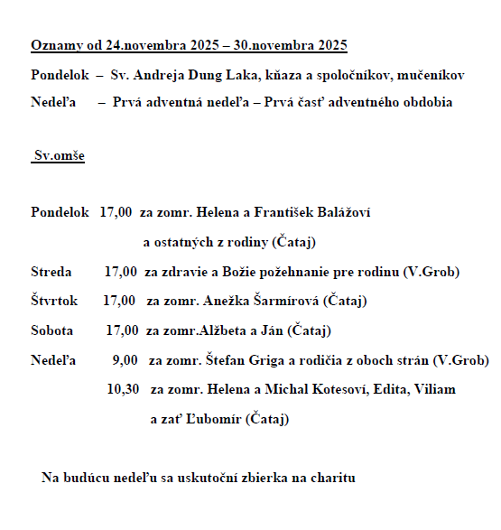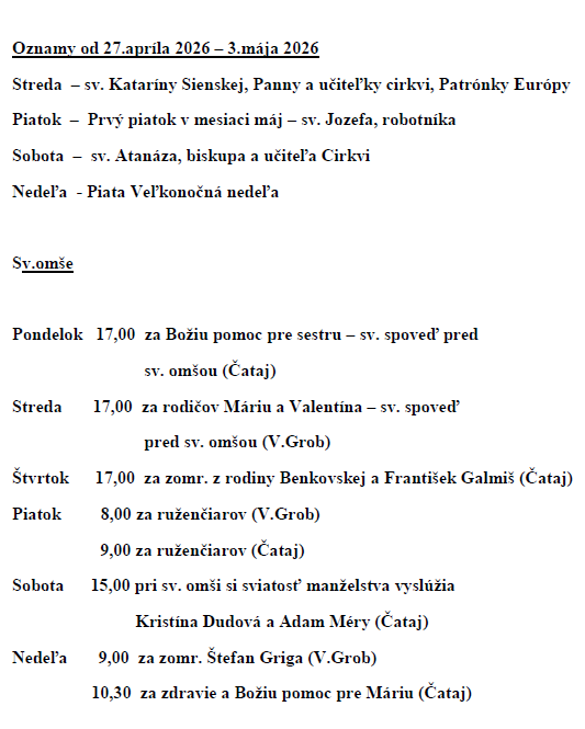 Rímskokatolícka cirkev Farnosť ČATAJ, ul. Hlavná 110, 900 83 ČATAJ, prevádzkujúca webové stránky http://www.cataj.fara.sk