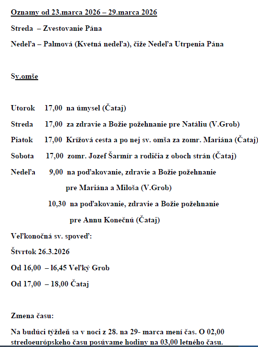 Publikované 27. februára 2026Autor farnosť ČatajKategórie Farské oznamy