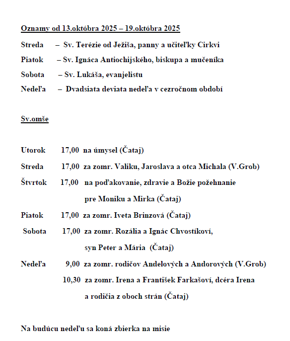 Rímskokatolícka cirkev Farnosť ČATAJ, ul. Hlavná 110, 900 83 ČATAJ, prevádzkujúca webové stránky http://www.cataj.fara.sk