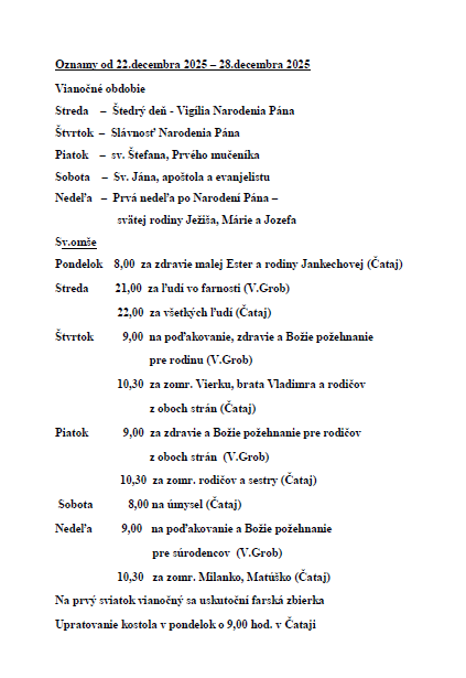 Rímskokatolícka cirkev Farnosť ČATAJ, ul. Hlavná 110, 900 83 ČATAJ, prevádzkujúca webové stránky http://www.cataj.fara.sk